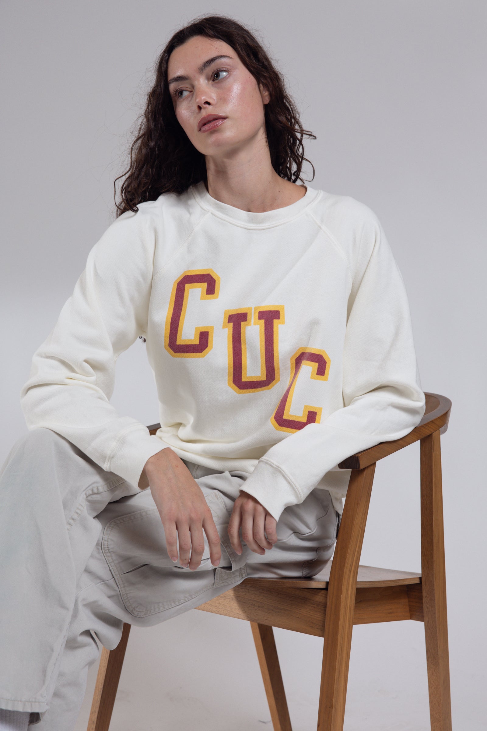 Ladies French Terry Crew | Vintage White